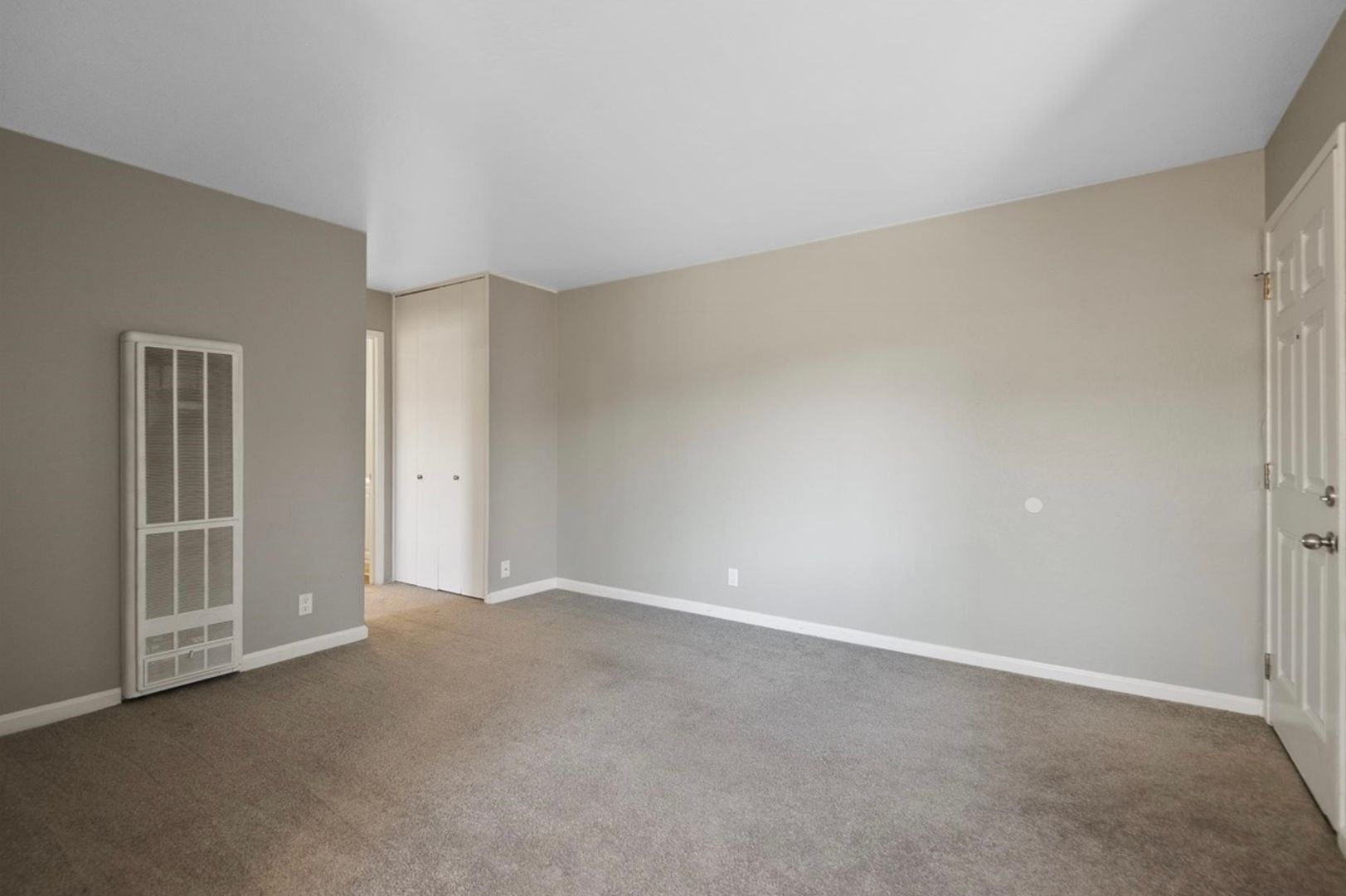 Large bedroom contains new carpet, oversized mirror closet doors, designer paint colors, plenty of closet space! 2 wall air conditioning units, one in the living/dining and one in the bedroom keep this apartment nice and cool in the summer months.