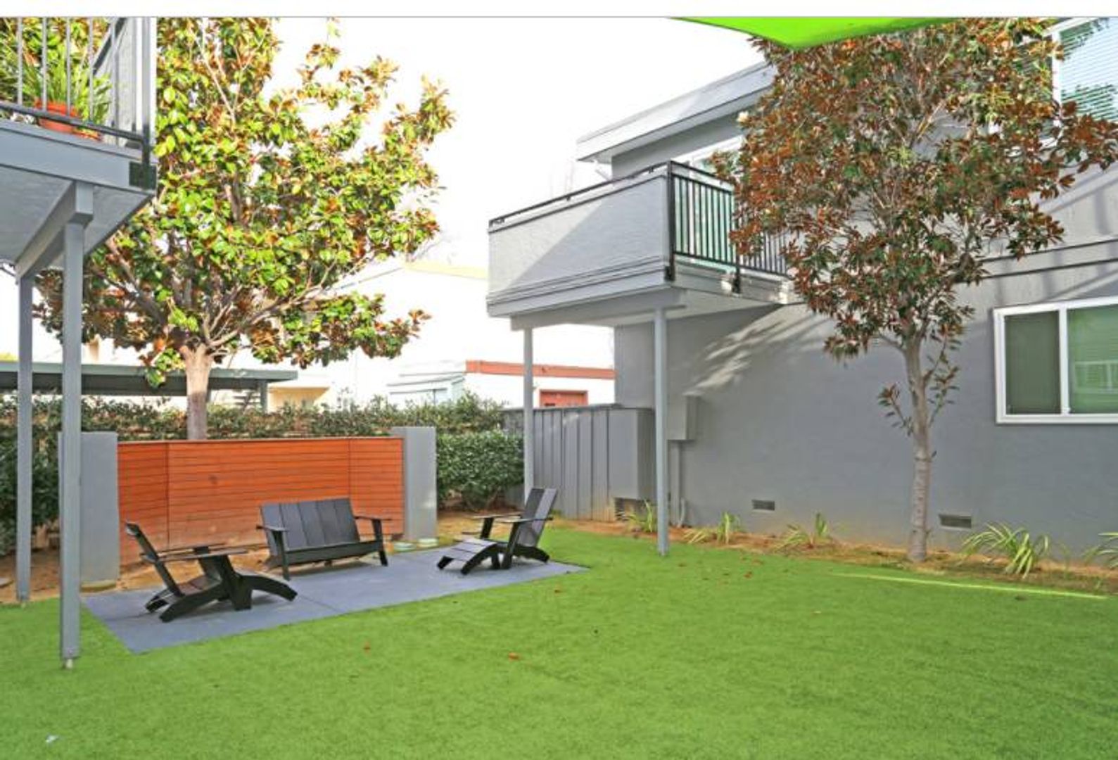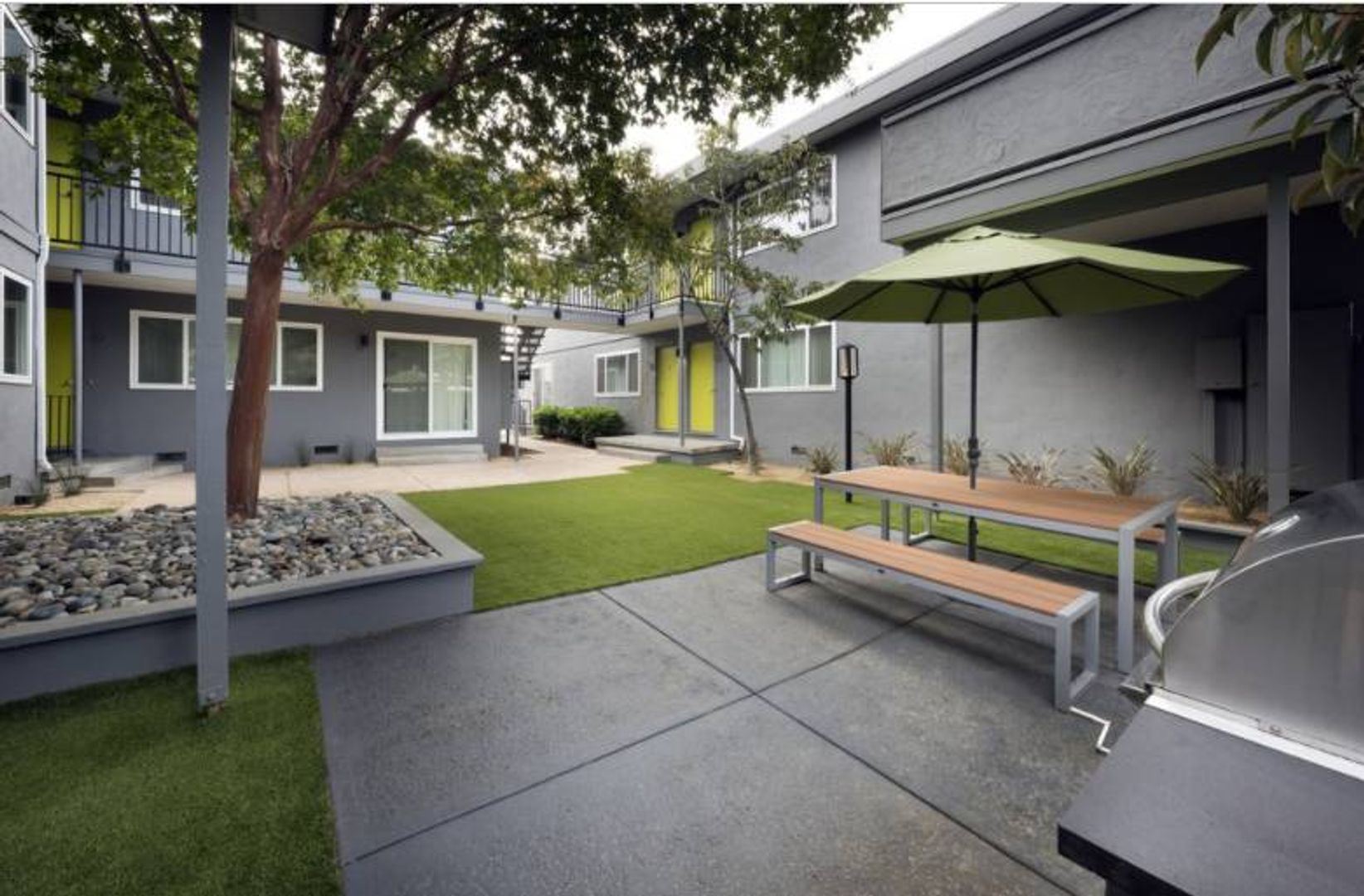 Community Amenities include lush courtyards and lawn area, bike parking, shaded picnic area with BBQ, picnic tables with beautiful landscaping.