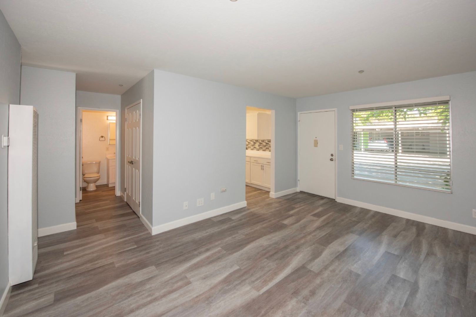 Renovated 1-bedroom, 1-bathroom unit available for rent in Mountain View, located at 2005 Colony St, Mountain View CA 94043. This single-level building offers privacy with no neighbors above or below. The spacious living room boasts open floor space and elegant hardwood flooring, complemented by vertical blinds on all windows. The charming kitchen features ample cabinet space, new appliances including a refrigerator, electric stove/oven, and hood, along with a dinette area.