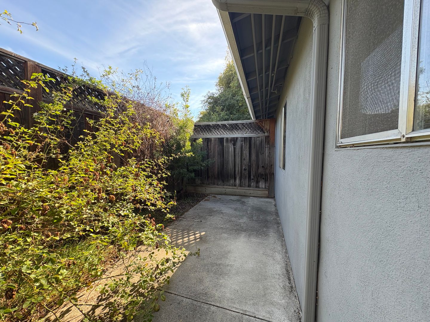 Enjoy a very private yard with loads of sunlight! Feel like growing plants? There is a small strip of dirt allowing for creative minds to work their magic! Bedroom contains designer paint colors, and a large closets for lots of storage. Large trees surround the property making it feel like a private garden!